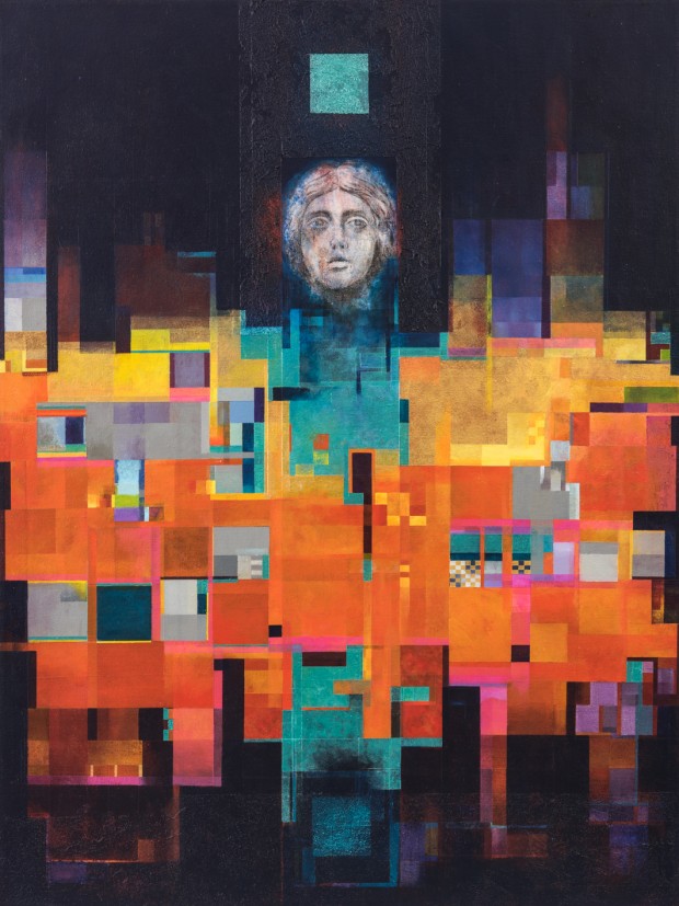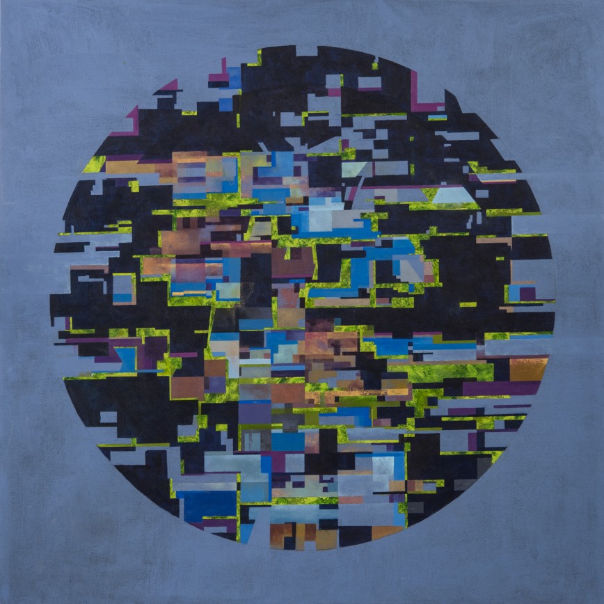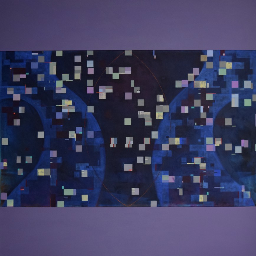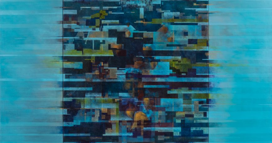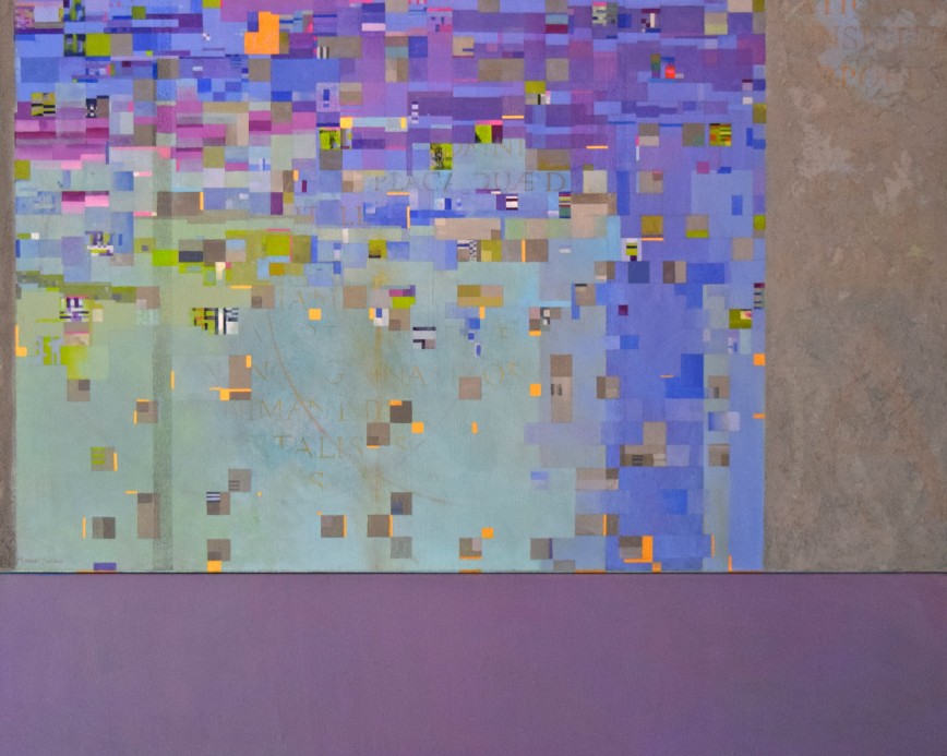 A sudden thunderstorm disrupts a satellite signal. A television screen image dissolves into a fluctuating matrix of coloured pixels. There is a strange beauty to this digital maelstrom that mirrors an aspect of our modern lives and the things we consider to be real and permanent are subject to the same dissolution. Within the states of these digital meltdowns, the paintings search for moments of creative coalescence.